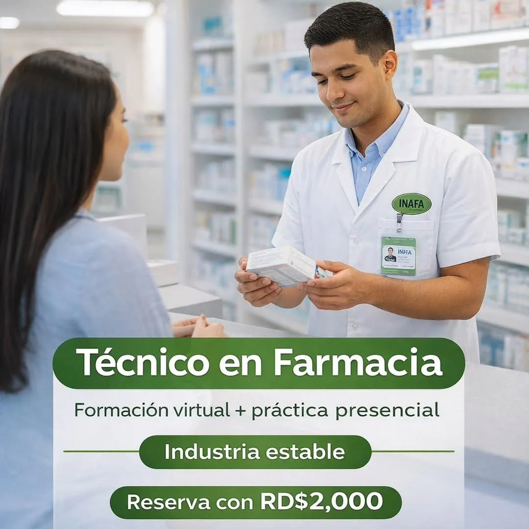 Modalidad y duración: Se ofrece en modalidad virtual. La pasantía es presencial en farmacias o laboratorios asociados. Se puede reservar el cupo con RD$2000 y pagar el resto en varias cuotas. Las clases son prácticas y enfocadas en abrir oportunidades reales en el mercado.